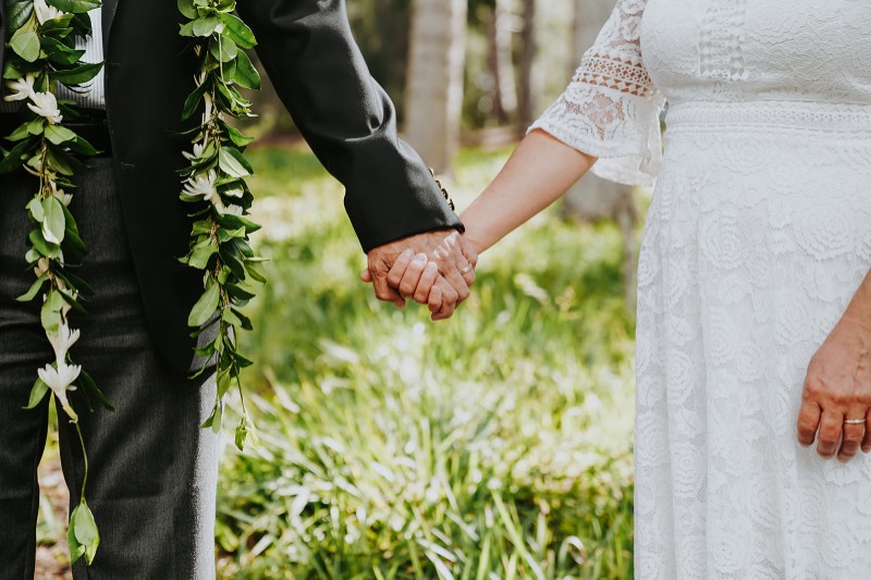 Picture exchanging your vows in this secluded haven, bathed in the soft, ethereal light filtering through the ancient canopy. Every shadow cast by the towering trees paints a perfect portrait, ensuring your precious moments are captured with an almost magical glow. And should a gentle Hawaiian shower bless your day, two charming pavilions stand ready, offering a cozy embrace.